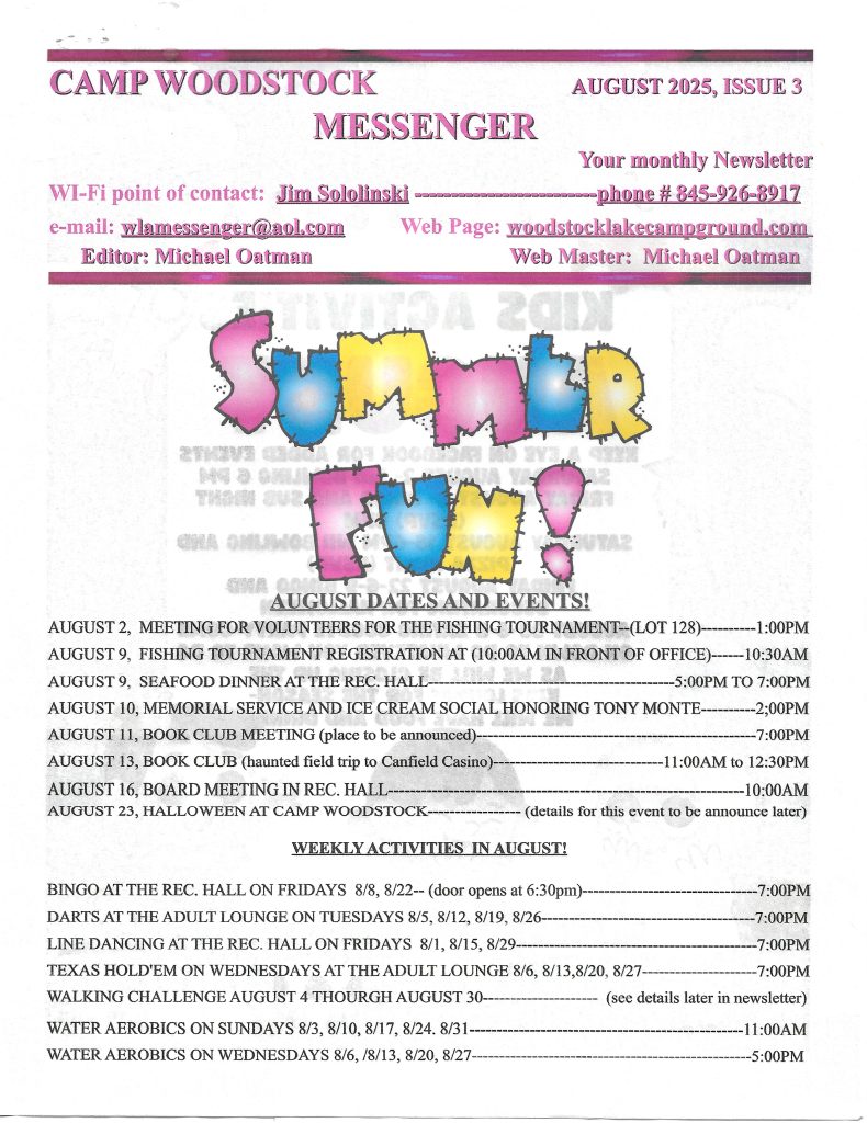 CAMP WOODSTOCK LAKE MESSENGER JUNE 2025 CAMP WOODSTOCK LAKE MESSENGER JUNE 2025 WLA MESSENGER NEWSLETTERDownload JULY 2025 WLA CAMP WOODSTOCK LAKE MESSENGER NEWSLETTER wla July 2025 newsletterDownload August 2025 Newsletter Issue 3Download September Newletter issue 4Download